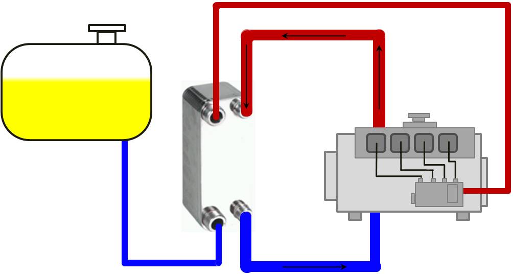 BHKW - Blockheizkraftwerk: Wasser mit 40% Ethylenglykol: 88°C → 70°C